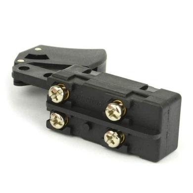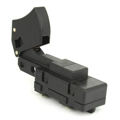 After market Trigger Type On-Off Switch used mainly on worm drive skill saws and other power tools. A switch handles all on/off and variable speed functions. They also have a role in electric breaking; they can momentarily reverse electrical polarity. Because switches use mechanical internals, they tend to degrade and wear out over time, eventually requiring replacement, but these switches are made to last longer. This Trigger type switch has 4 internal terminals. Replaces Skil part number 2610321608. These are as good as the genuine Skil part, at a much lower price! Compatible with many powertools from Skil and Bosch. Details are provided below.