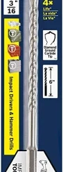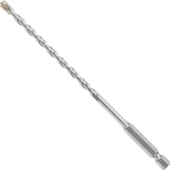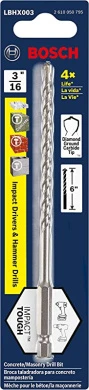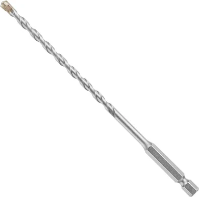 Bosch Hex Shank Hammer Drill Masonry Bits deliver 4X life vs. standard masonry bits, and have been redesigned with hex shanks for use in hammer drills and impact drivers. These bits feature asymmetric diamond-ground carbide tips, which deliver fast drilling and longer bit life in hammer drills and impact drivers. The tips are designed for precise starts and less bit walking. The bit heads are manufactured with exclusive Bosch-made carbide. They have milled U-flutes with deep-cut spirals for fast drilling in block, masonry and concrete. The hex shank provides aggressive gripping power.