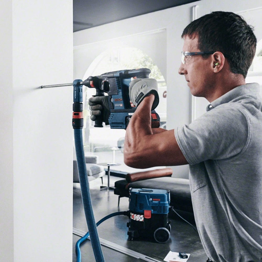 BOSCH® SPEEDCLEAN™ Dust Extraction Hammer Drill Bits provide users with a concrete drilling solution which considerably reduces dust when used with a suitable Dust Extractor. During application, the built-in vacuum attachment pulls dust though extraction holes in the drill bit, allowing optimum material removal without additional steps. This technology results in a clean, dust-free working environment. The bit is intended for use on concrete and other masonry surfaces.