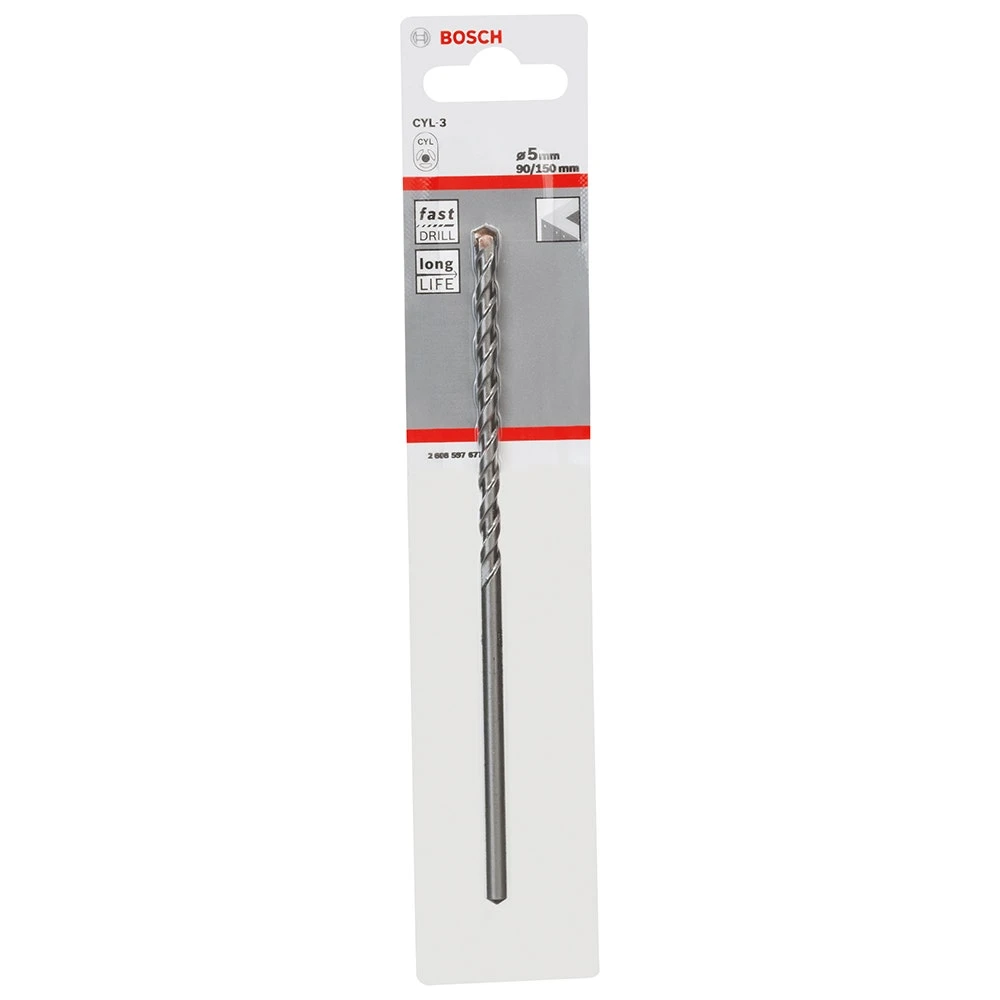 The Bosch Masonry Drill Bit provides lasting performance when drilling concrete. Its stamina is a result of a highly durable carbide blend specially developed and manufactured by Bosch. The blend is adapted to meet the demands of repeated use and offers high wear resistance when working with concrete.