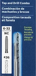Bosch Tap and Drill Bit Combo Sets are an easy way to ensure drilling the proper hole size before cutting internal threads. Plug taps are ideal for cutting right-hand internal threads; they are the most widely used type of tap, with three to five threads chamfered for general-purpose applications. The included drill bit is matched to the tap for the proper hole size. The bit is designed with split points to reduce bit walking for clean, accurate starts. The bit’s speed helix design promotes fast drilling. The plug tap is recommended when there is sufficient room on a blind hole and tapping to the bottom of a hole is not critical. Made from heat-treated carbon steel, it is a rust- and tarnish-resistant tool. The rolled threads are more accurate and cleaner than machined threads. They are tooled to the most exacting specifications to ensure that bolts anchor securely. Laser-etched marking ensures size identification and won’t wear off. They feature a precise flute design to ensure fast and easy chip clearance.