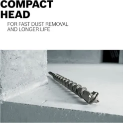 Inclined side cutters provide fast concrete drilling.