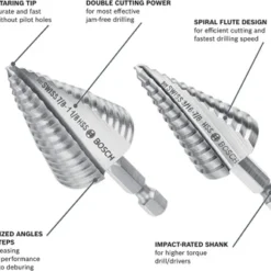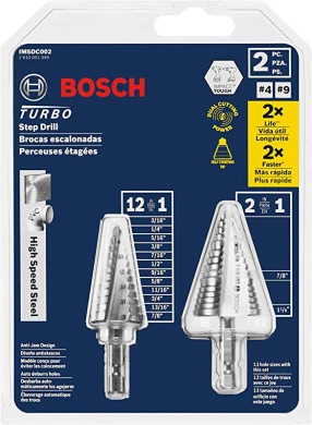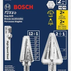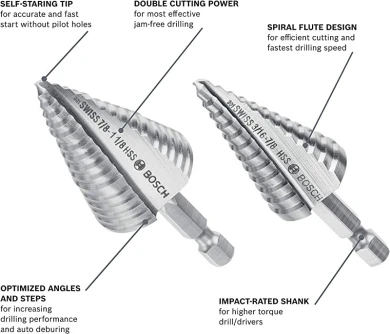 Bosch Turbo Step Drill Bits deliver extreme performance and are optimised for cordless applications. Featuring 2X cutting edges for increased drilling speed and a high-speed design, these bits provide enhanced lifetime, as well as premium hole quality for up to 2X more holes per battery charge.