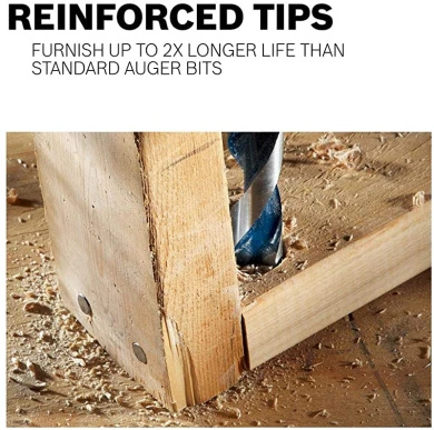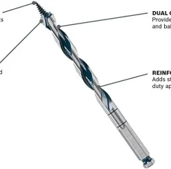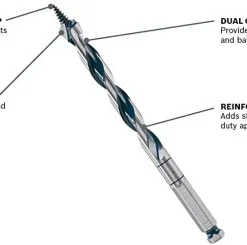 Bosch Daredevil auger bits offer leading-edge technology in wood drilling; designed for superior performance against nail hits. A unique double cutter and reamer edge provide improved hole quality. A reinforced spine delivers additional strength during aggressive drilling. Wider flutes engineered for better chip removal.