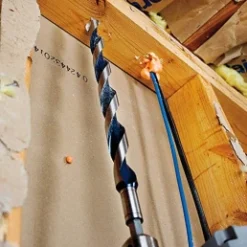 Bosch’s DareDevil spade bits have drilling speed and force that sets them in a performance class of their own. Designed with a patented full cone threaded tip, drilling becomes fast and effortless for these bits. Also unique to these bits is the spur and reamer feature that allows for drilling of cleaner holes. In addition to these features, the contoured paddle design is what really sets these spade bits apart from the rest of the market. This design allows for chip removal to be reached at higher speeds than ever. With chipping speeds this high, DareDevil has added a hex shank power groove at the end of the bit to further reduce slippage during use. These spade bits are available in a wide selection of sizes and packs, making them perfect for the contractor, professional, or heavy duty do-it-yourselfer.