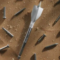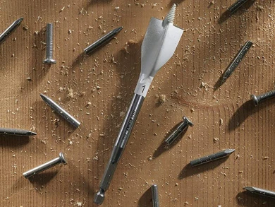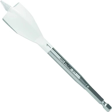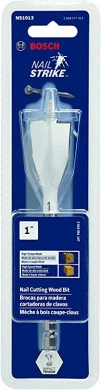 Bosch Nail Strike Wood-Boring Bits are the first wood-boring bits to power through nail-embedded wood. The bit features reamer edge made of tough, reinforced steel that cut through up to 30 nails. Each bit has a fully threaded cone tip that pulls it through the wood, offering best-in-class speed through 2x4s. These bits are ideal for boring clean holes through wood fast to run conduit or pipe. The contoured paddle design also enhances chip removal, contributing to the fast performance. The hex shank with power groove reduces bit slippage in the drill and makes it suitable for use with a variety of drill types, including impact drills. These bits should not be used in a drill press and are not intended for counter boring or doweling.