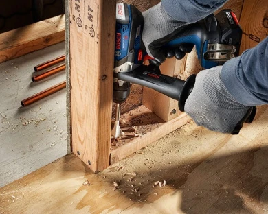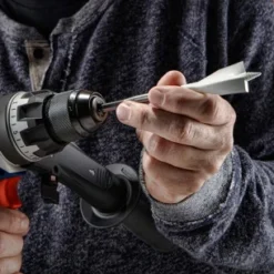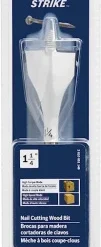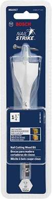 Bosch Nail Strike Wood-Boring Bits are the first wood-boring bits to power through nail-embedded wood. The bit features reamer edge made of tough, reinforced steel that cut through up to 30 nails. Each bit has a fully threaded cone tip that pulls it through the wood, offering best-in-class speed through 2x4s. These bits are ideal for boring clean holes through wood fast to run conduit or pipe. The contoured paddle design also enhances chip removal, contributing to the fast performance. The hex shank with power groove reduces bit slippage in the drill and makes it suitable for use with a variety of drill types, including impact drills. These bits should not be used in a drill press and are not intended for counter boring or doweling.