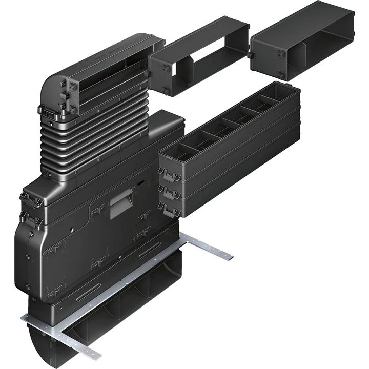 3 horizontal adapter elements (40mm, 80mm, 120mm) Upper 90° diverter element Flexible telescopic element 4 height adapter elements (50mm each) Housing element for cleanAir filter drawer casette CleanAir high performance odor filters Lower 90° diverter with air outlet Adaptve air diffusor element Element for fixation onto bottom panel of furniture Optimized for quick and flexible installation Construction type: Built-in Product group for which the accessory is available: Cooking Country of origin:…read more