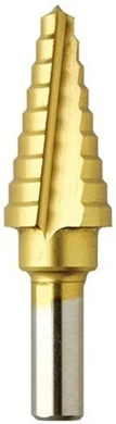 The Bosch line of step drills offers the ability to drill up to 13 different size holes with a single bit. Step drill bits are ideal for electrical, plumbing and HVAC contractors. Titanium-coated step drill bits remain clean and accurate even in the toughest materials; superior durability that lasts up to six times longer life than high-speed steel.