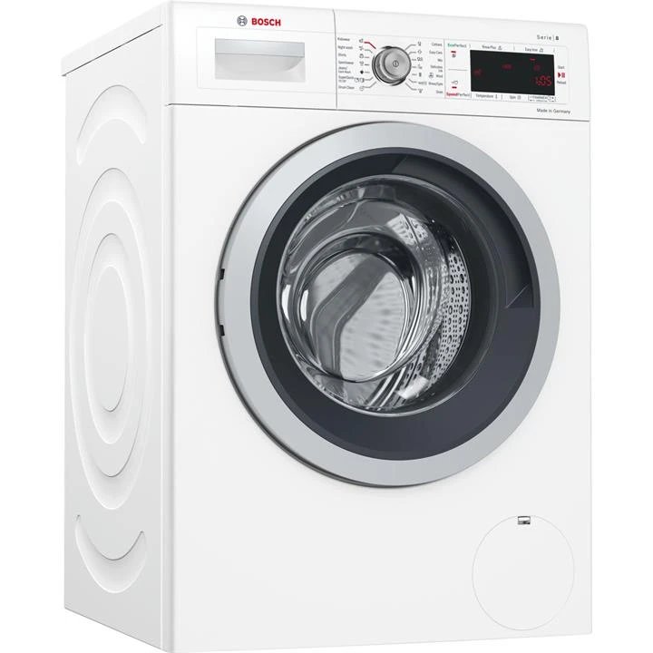 Bosch WAW28420AU 9 Kg Washing Capacity Washing Machine Washer Front Load Freestanding White Made in Germany Dial control type Variable Temperature Variable Spin Encoder Knob Cold Wash Option Time Remaining Display Auto Balance Quiet Operation Vibration Reduction 1400 rpm ActiveWaterâ„¢ Plus VarioPerfectâ„¢ ActiveWaterâ„¢ Plus 4.5 Energy Stars 4.5 Star water rating VarioDrum’s breakthrough wave-droplet design AntiVibration Side Panels Time delay Reload function Child-proof lock Capacity: 9 kg 4.5…read more