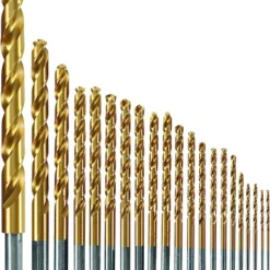 Bosch Titanium-Coated Metal Drill Bits have been designed to satisfy the needs of HVAC or facility maintenance technicians, contractors and other pros who need solid, reliable bits for general-application drilling in high-carbon steel and light-gauge metal, as well as wood and plastic. The split-point tip has been engineered for no-skate starts and clean, accurate holes. The bit provides 2X longer life than standard drill bits, thanks to the tip design and titanium coating. The three-flat shank design on bits 0.5cm and larger promotes better gripping and guards against slipping. Includes: (2) 0.2cm , (2) 0.2cm , (1) 0.2cm , (1) 0.3cm , (2) 0.3cm , (1) 0.4cm , (1) 0.4cm , (1) 0.4cm , (2) 0.5cm , (1) 0.5cm , (1) 0.6cm , (1) 0.6cm , (2) 0.6cm , (1) 0.8cm , (1) 1cm , (1) 1.3cm